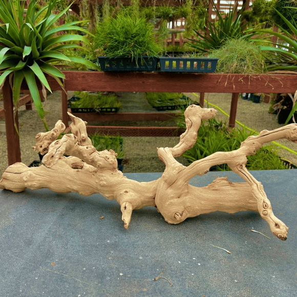 24”+ Sandblasted Grapewood Branch, a strikingly textured piece, perfect for enhancing terrariums, aquariums, or as a unique addition to home decor. Its weathered appearance brings an organic, rustic touch to any space.